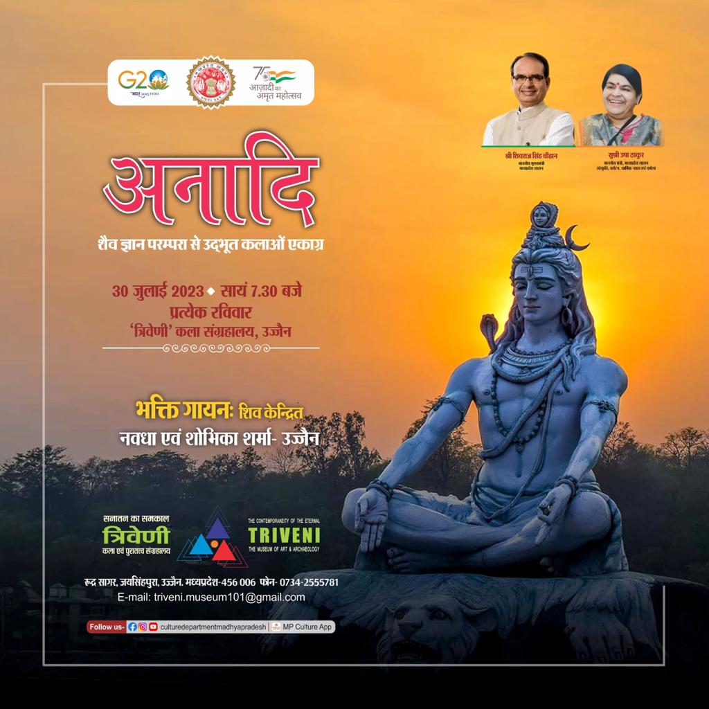 शैव ज्ञान परंपरा से उद्भूत कलाओं पर एकाग्र साप्ताहित श्रंखला अनादि के अन्तर्गत इस रविवार शिव केन्द्रित भक्ति गायन की प्रस्तुति सुश्री नवधा एवं शोभिका शर्मा - उज्जैन के कलाकारों द्वारा प्रस्तुत होगी ।